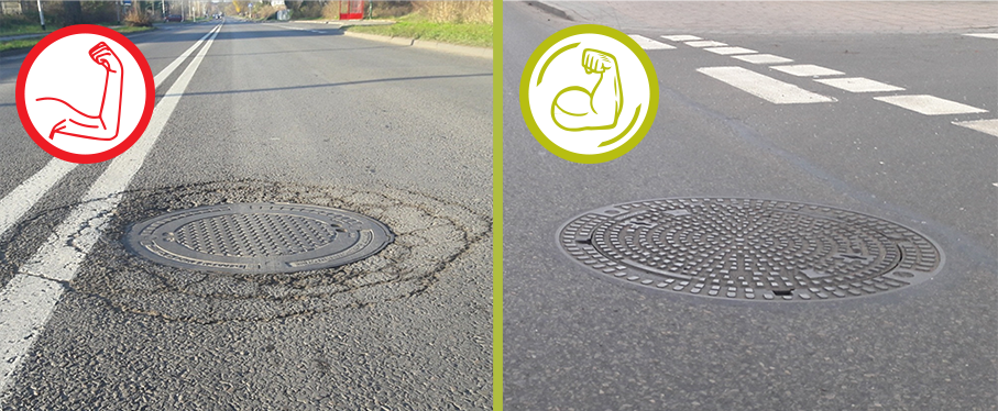 - Nedrīkst izmantot cementa javu starp polimēra elementiem un starp čuguna lūkas parsedzi un polimēra elementu;