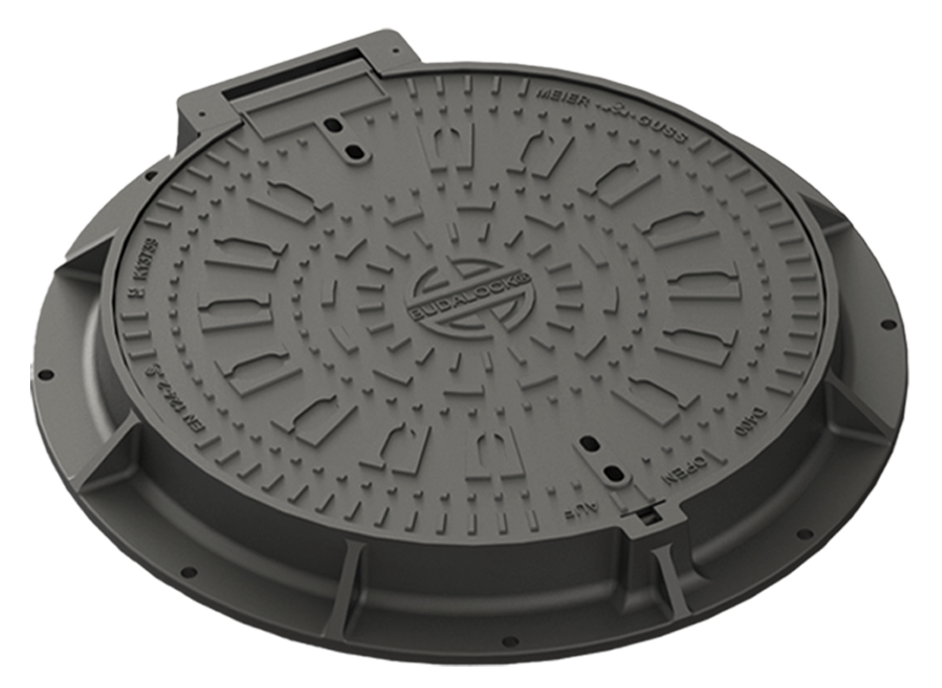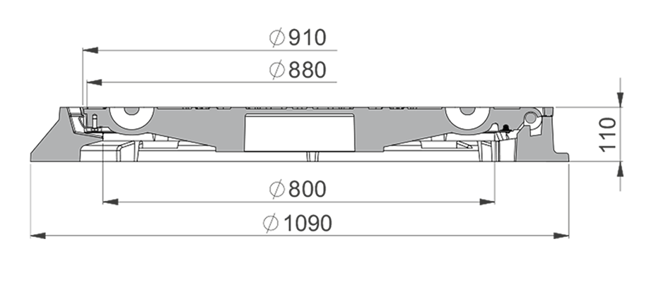 Stacioāra tipa kaļamā ķeta lūkas pārsedze (rāmis un vāks ar eņģi) DN 800/1090[mm], atbilstoši LVS EN 124-2 prasībām.