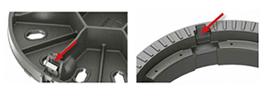 Polsterējums palielina izturību un palielinātu stabilitāti, kā arī samazina trokšņa līmeni. Slodzē, atkarība no polsterējuma blīvuma, polsterējums iespiežas vākā vai restes. Ja starpība starp slogojumu un atslogojumu ir pārāk liela, tas var radīt «tramplīnā efektu». Maksimāli pieļaujamā deformācija ir 3mm.-