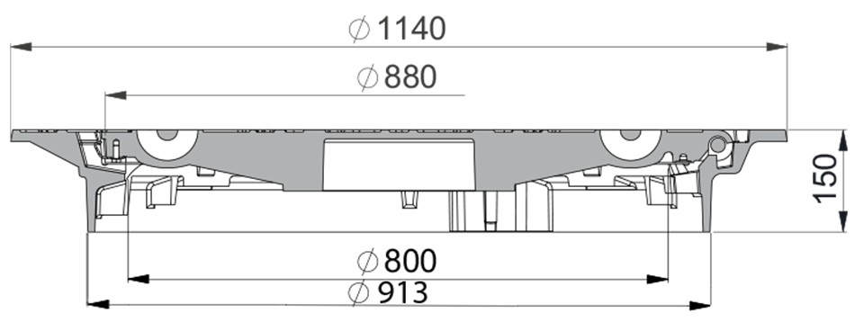 Peldoša tipa kaļamā ķeta lūkas pārsedze (rāmis un vāks ar eņģi) DN 800 [mm], atbilstoši LVS EN 124-2 prasībām.
