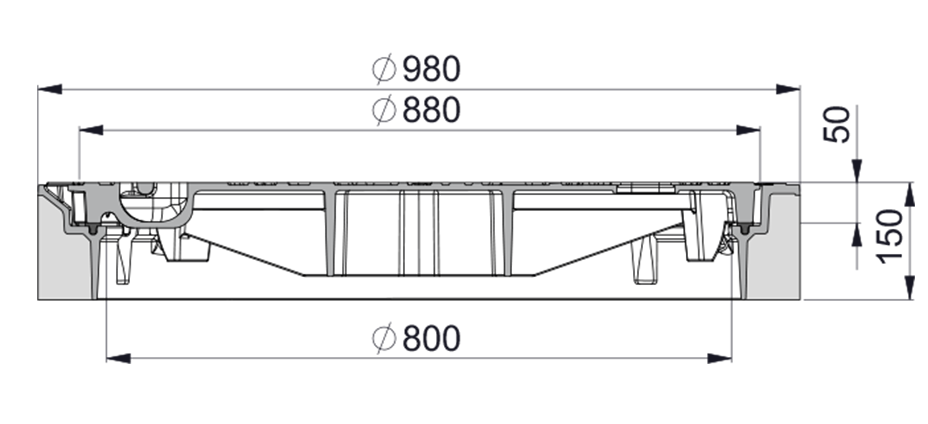 Stacionāra tipa apaļš rāmis un vāks ar betonu