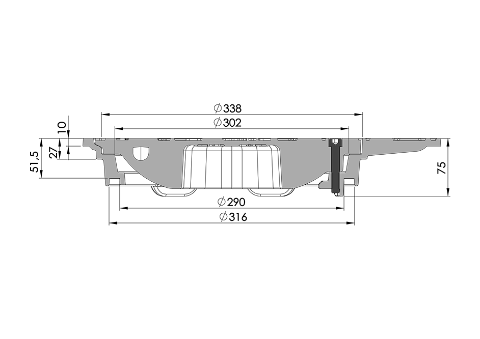 Kantaina lūkas pārsedze ar apaļu vāku un teleskopisko cauruli, DN 315 [mm], 0.6 [m], D400. | 82706331542730001A |