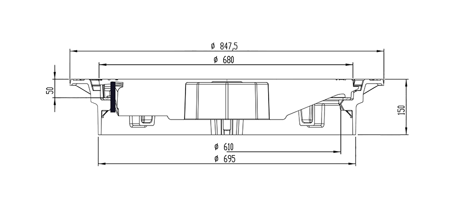 Peldoša tipa apaļa kaļamā ķeta lūkas pārsedze (rāmis ar režģi), DN 700 [mm], apkalpes atvērums 610 [mm], EN124.