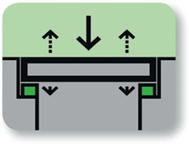 Polsterējums palielina izturību un palielinātu stabilitāti, kā arī samazina trokšņa līmeni. Slodzē, atkarība no polsterējuma blīvuma, polsterējums iespiežas vākā vai restes. Ja starpība starp slogojumu un atslogojumu ir pārāk liela, tas var radīt «tramplīnā efektu». Maksimāli pieļaujamā deformācija ir 3mm.-