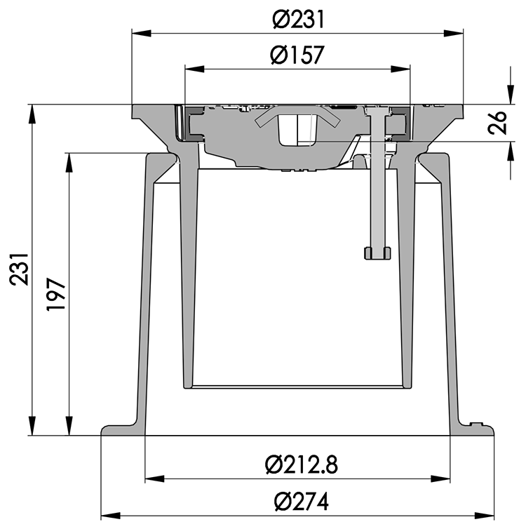 Virszemes kape pazemes aizbīdņiem, DN 160 mm: