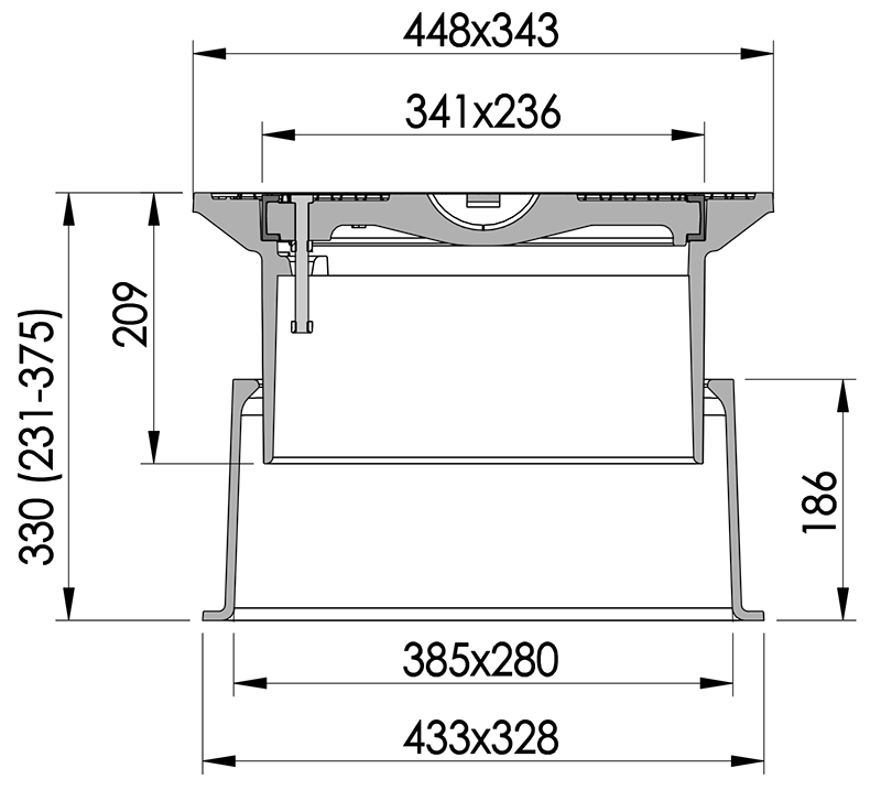 - regulējams slīpums (≥ 14°) un augstums (h = 231-370 mm)