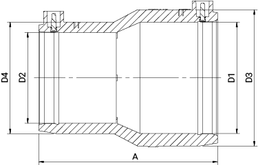 D1 [mm] D2 [mm] A [mm] D3 [mm] D4 [mm] Svars [mm] 25 20 84 35 35 0,05 32 20 87 45 37 0,06 32 25 87 45 38 0,06 40 25 87 57 37 0,10 40 32 92 52 42 0,07 50 25 85 68 46 0,13 50 32 117 65 43 0,11 50 40 87 68 57 0,14 63 25 113 82 45 0,21 63 32 127 82 47 0,20 63 40 110 81,5 58 0,19 63 50 122 82 66 0,21 75 63 128 100 82 0,38 90 63 168 115 82 0,48 90 75 161 112 95 0,45 110 63 180 135 82 0,61 110 75 163 140 100 0,82 110 90 175 135 111 0,68 125 63 198 151 83 0,77 125 90 181 151 112 0,83 125 110 181 151 135 0,88 160 90 231 195 133 1,97 160 110 231 195 136 1,69 160 125 201 196 153 1,57 180 125 210 220 153 1,87 200 125 227 238 152 2,03 200 160 226 239 196 2,39 200 180 225 238 213 2,39 225 160 260 266 196 3,38 225 180 251 266 214 3,15 225 200 250 266 239 3,42 Speciālā redukcija
